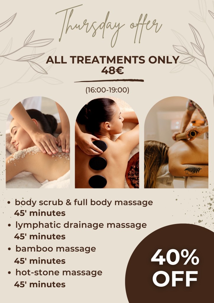 Looking for a relaxing spa in Zakynthos? At Inspiration Wellness Center in Kalamaki, we’re delighted to offer daily special deals on selected treatments to help you unwind, recharge, and feel your best—without stretching your budget.
